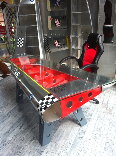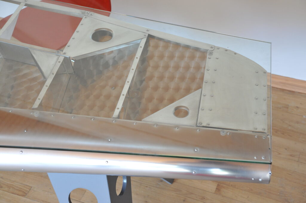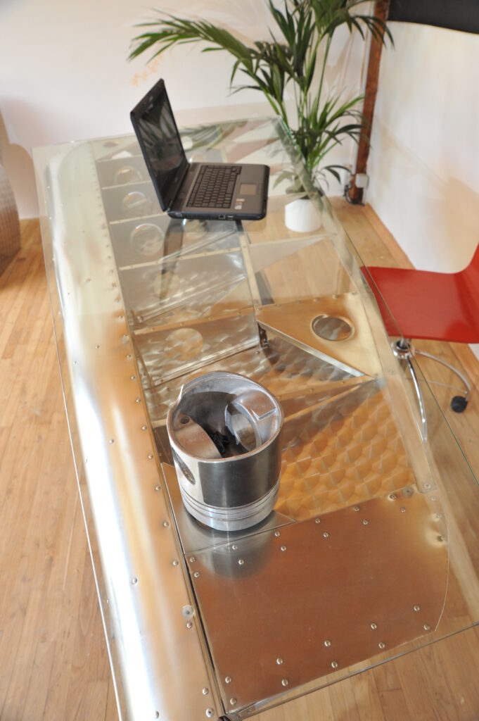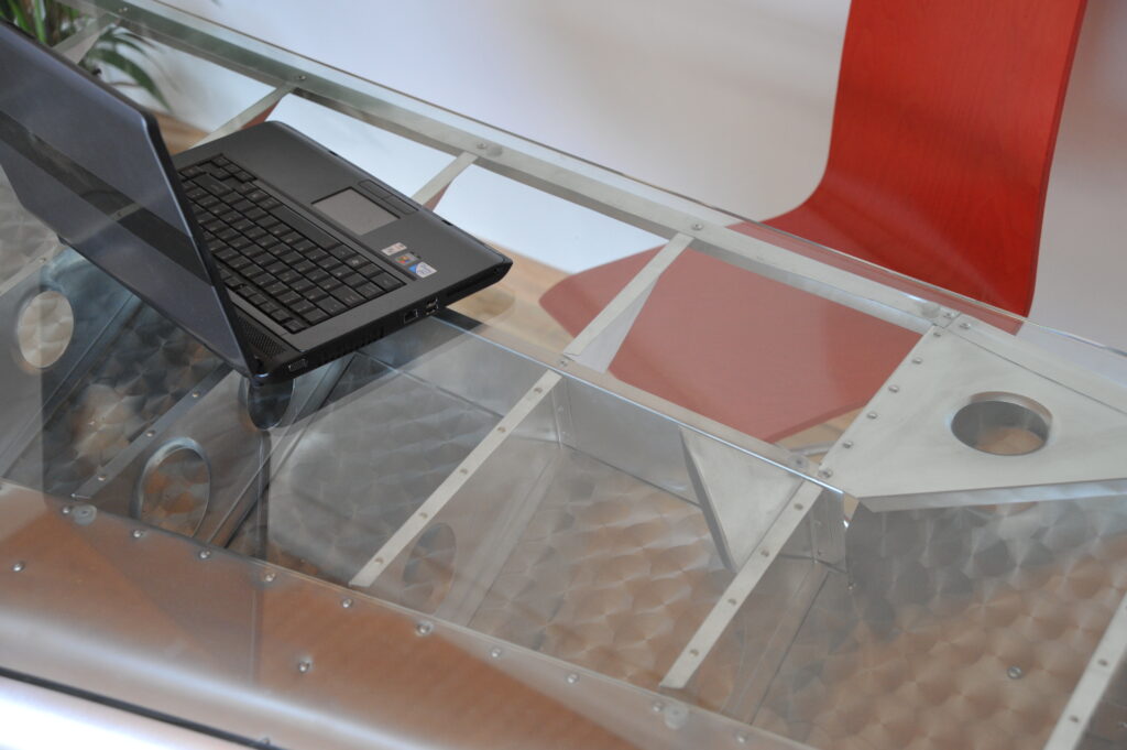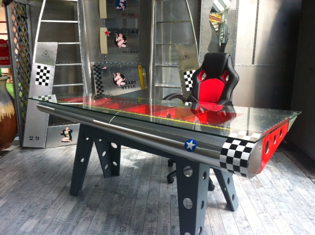 Bureau aile d’avion avec un plateau en verre securit.